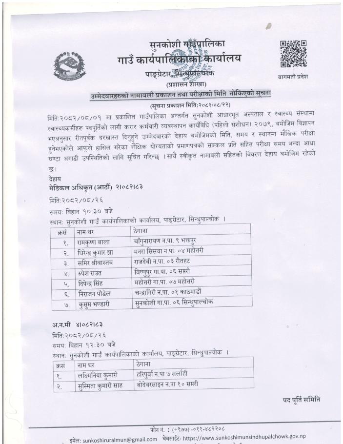 » उम्मेदवारहरूको नामावली प्रकाशन तथा परीक्षाको मिति तोकिएको सूचना |