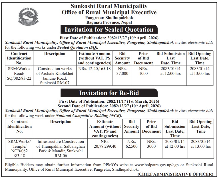 सार्वजनिक खरिद/बोलपत्र सूचना