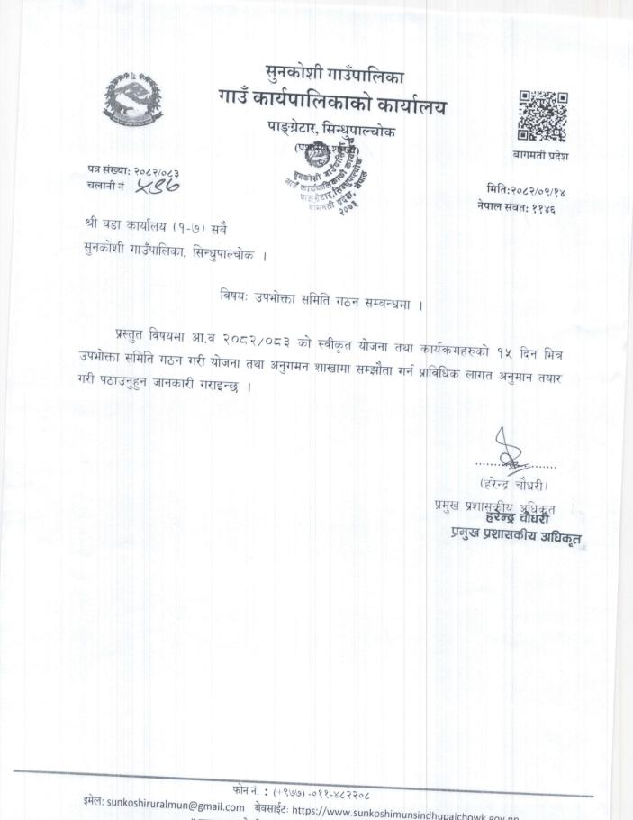 उपभोक्ता समिति गठन सम्बन्धमा |