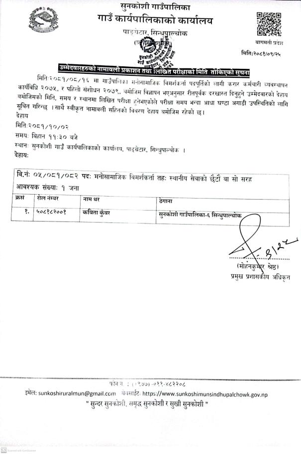 उम्मेदवारहरुको नामावली प्रकाशन तथा लिखित परीक्षाको मिति तोकिएको सूचना