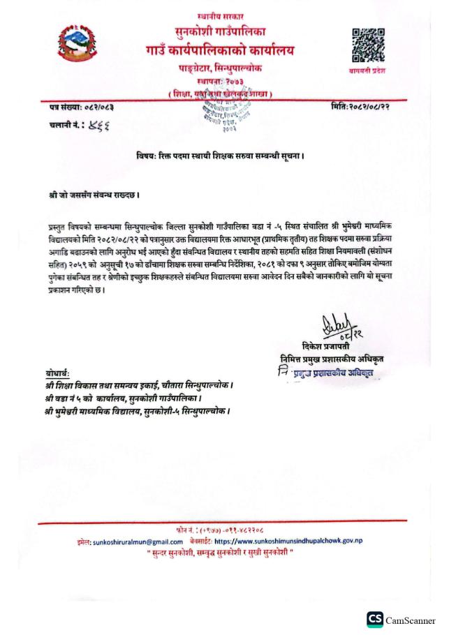 रिक्त पदमा स्थायी शिक्षक सरुवा सम्बन्धी सूचना |